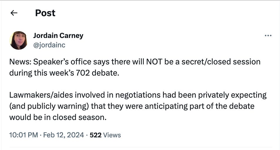 Interestingly, shortly after 10pm last night, POLITICO reported that House Speaker Mike Johnson (R-LA) had backed off plans for a secret House session to debate the bill:
